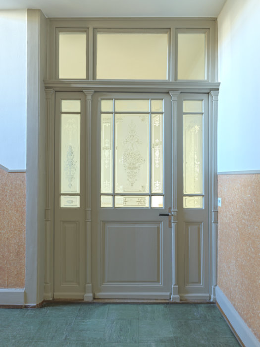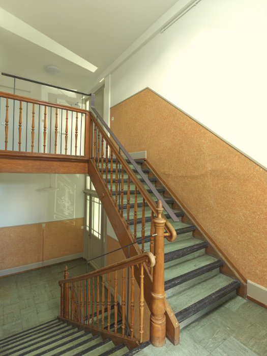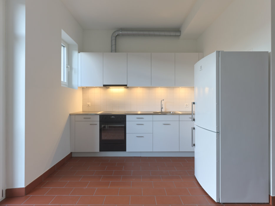 Die Haustechnikinstallationen wurden erneuert und teilweise neu angeordnet. Dafür konnten auch nicht mehr gebrauchte Kaminzüge in den Küchen verwendet werden. Bestehende Farben, Materialien und Oberflächen blieben soweit wie möglich erhalten. Neue Bauteile fügen sich passend dazu ein und helfen mit, den Charakter der Wohnungen zu erhalten.